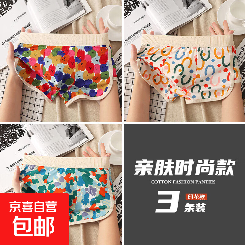 男士内裤男装运动男生四角裤头男款平角裤衩短裤内裤男 迷彩+彩色表情+七彩斑点【装】 3条 2XL 【适合130-150斤】