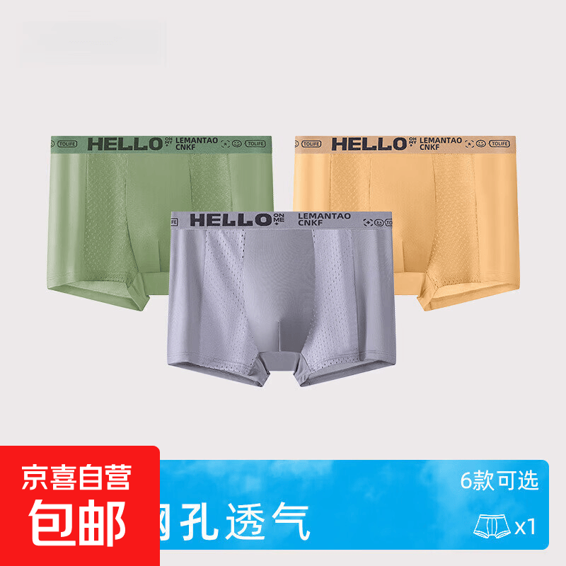 夏季冰丝男士内裤HELLO腰带四角网孔裤衩平角短裤头男款 颜色随机 2条 3XL 【135斤-155斤】