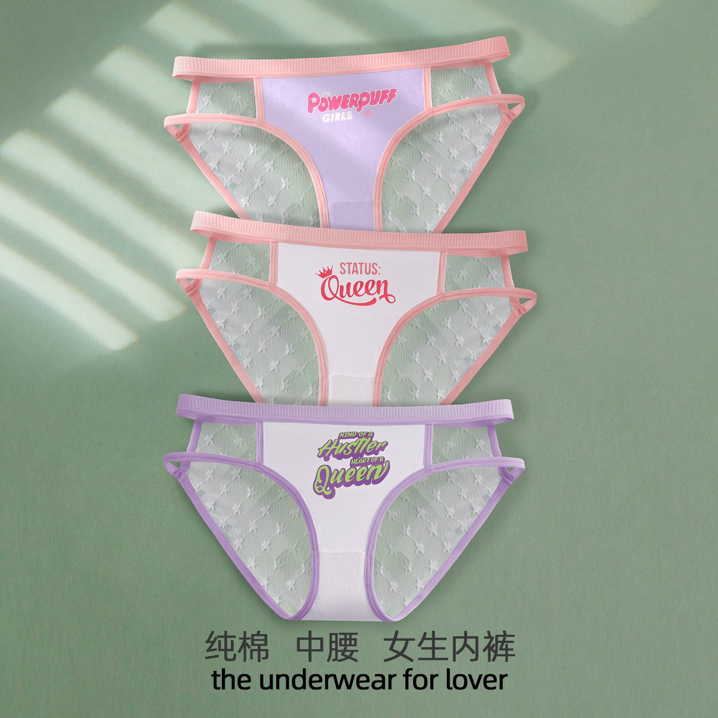 美式女士内裤印花纯棉性感透明网纱镂空透气抑菌裆女三角裤衩大码