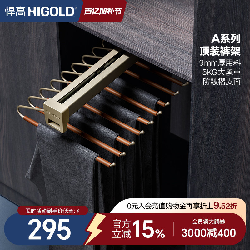 悍高衣柜顶装收纳裤架抽拉式衣帽间挂衣杆太空铝柜内裤架高承重