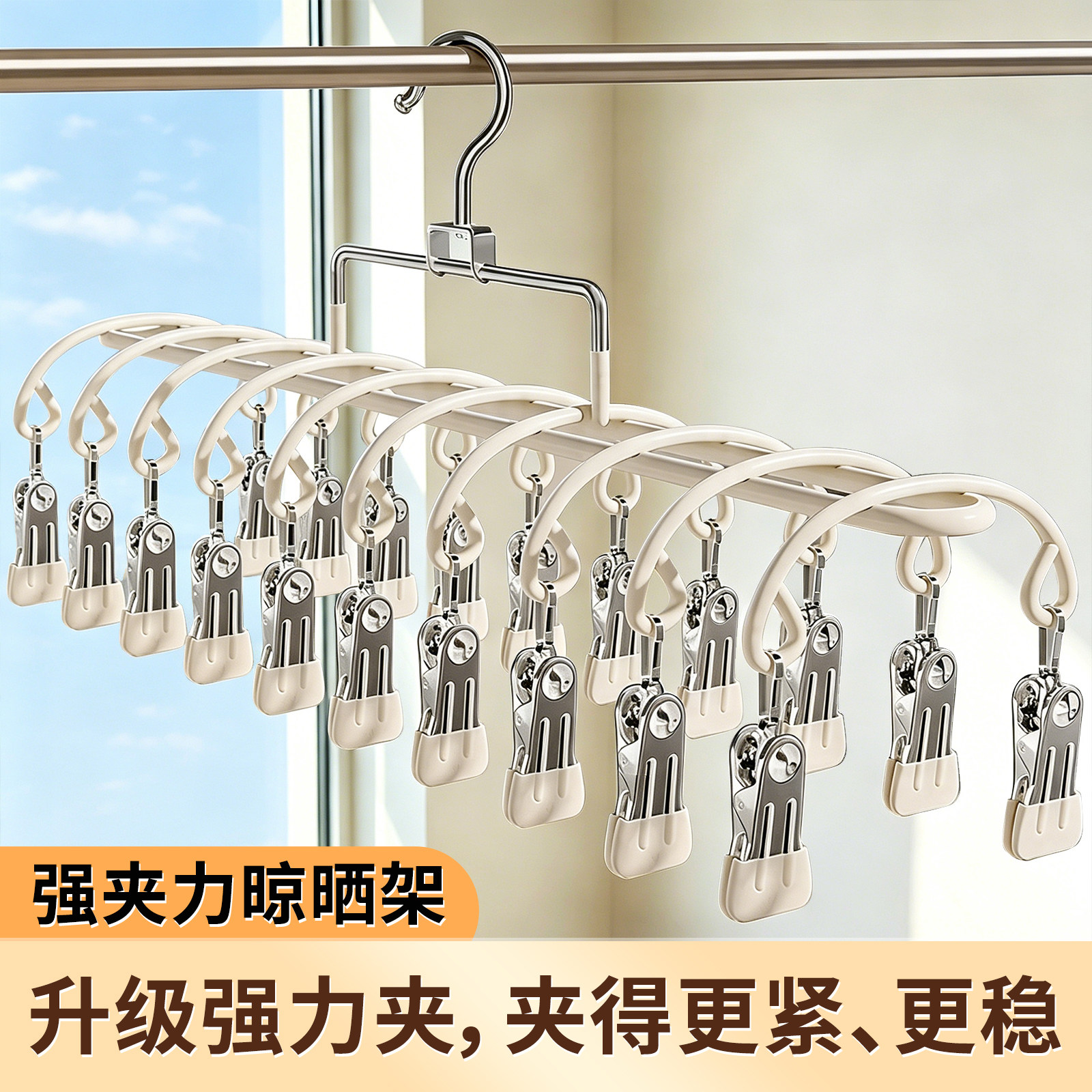 袜子晾晒架家用不锈钢多夹子晾衣架阳台防风晾内衣内裤晒袜子神器