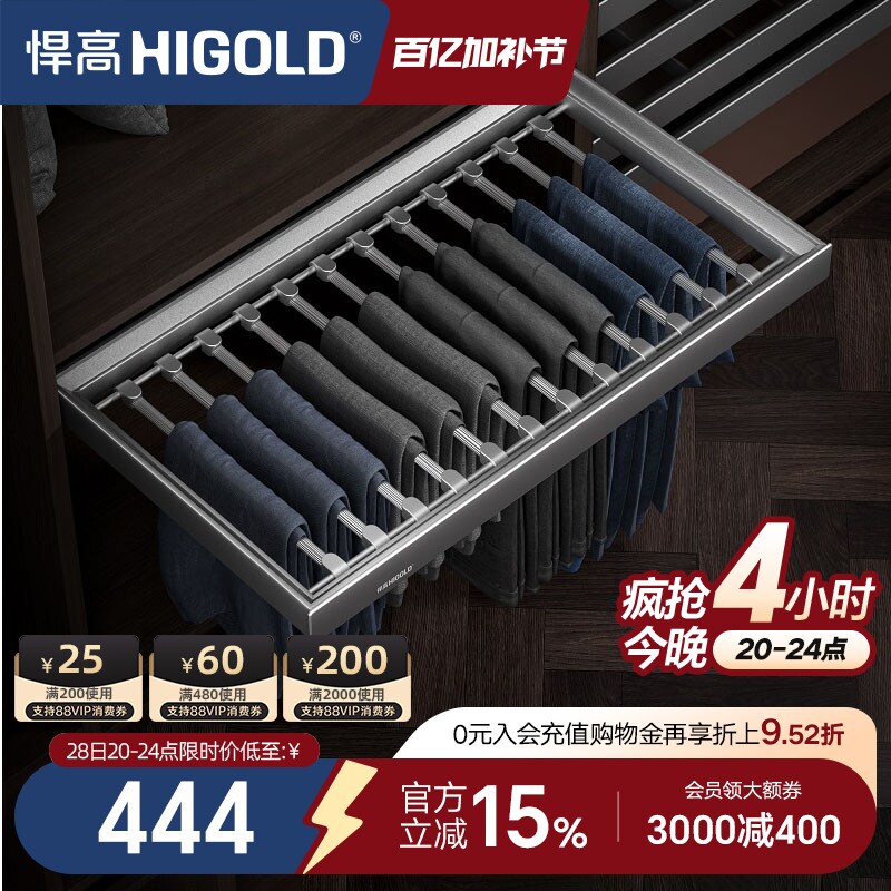 HIGOLD/悍高 衣柜裤架拉篮柜内裤架挂裤架西裤架收纳皮篮阻尼缓冲