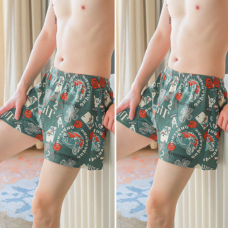 JPUZ男士内裤纯棉平角家居阿罗裤睡裤宽松短裤头透气平角裤薄款印花 绿色+绿色 2条 3XL 【适合170-200斤】