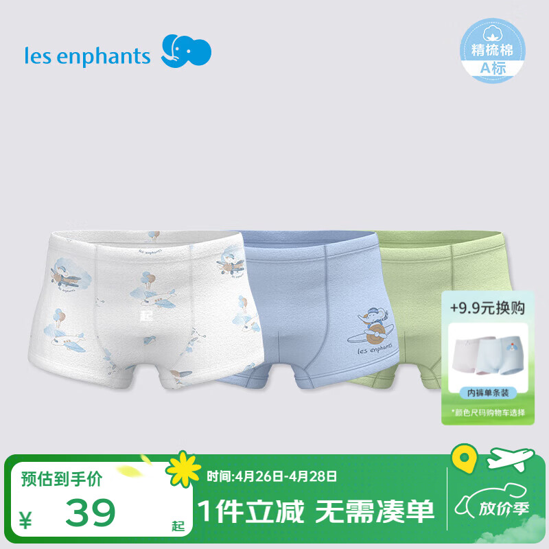 丽婴房(Les enphants)儿童内裤纯棉内裤男女童内裤四角不夹PP中大童平角裤抗菌三条装 活力飞行-男童(5A抗菌纯棉) 3条 90 CM/2岁