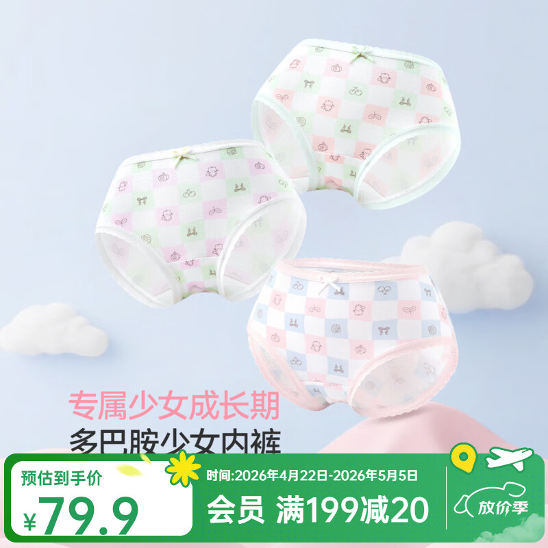 久岁伴少女【26新款】3条莫代尔三角内裤A类7A抑菌大童棉柔桑蚕丝内裆 三角内裤 3条 2XL (175) 建议身高170-180,体重110-130斤