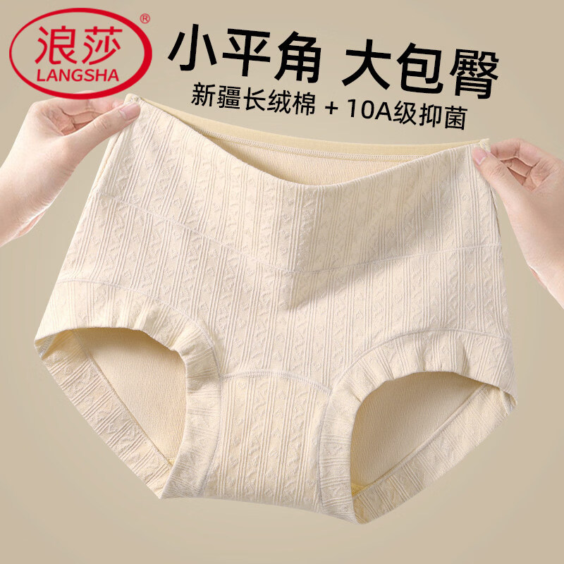 浪莎(LangSha)女士内裤纯棉高腰收腹10A抑菌裆平角内裤棉裆无痕四角短裤 3条:乳白+燕麦+芋紫 2XL 140-160斤