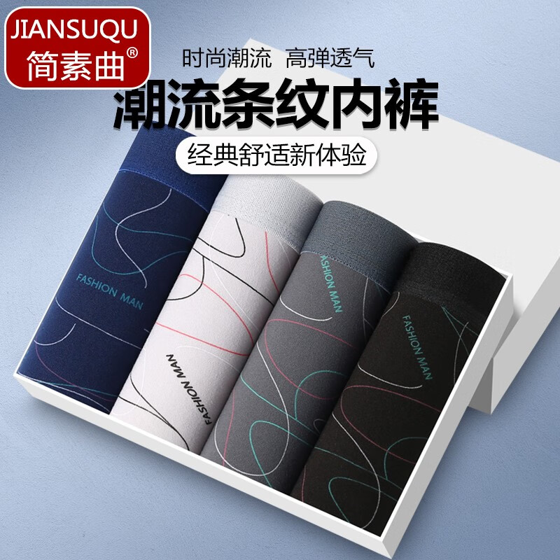 简素曲新款曲线男士内裤个性时尚平角裤潮流舒适肤四角裤舒适高弹内裤 【颜色随机】 搭配装 2条 3XL (140-170斤)