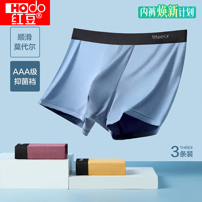 红豆男士内裤莫代尔AAA级裆透气商务男士平角裤3条装 (231)组合二 2XL 180/86A