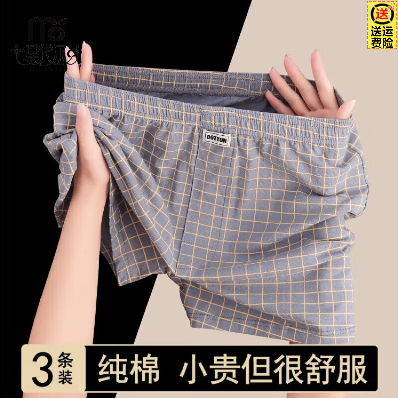 莫代尔纯棉宽松男士内裤男款透气阿罗裤男生格子休闲短裤男款居家睡裤 【纯棉透气】黑色+深蓝+灰色 3条 2XL 推荐体重140-160斤