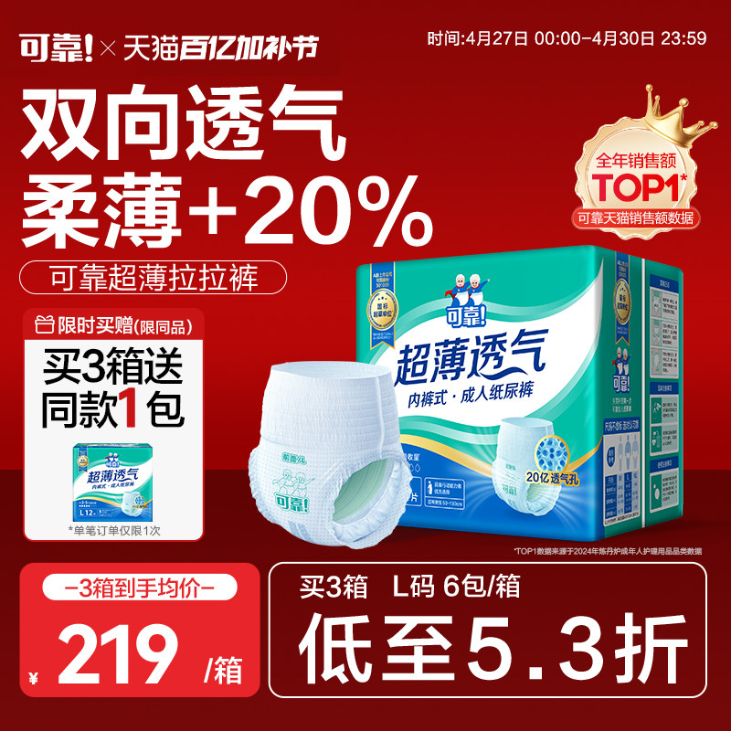 可靠吸收宝成人拉拉裤内裤型纸尿裤老年人用男女通用防漏尿不湿