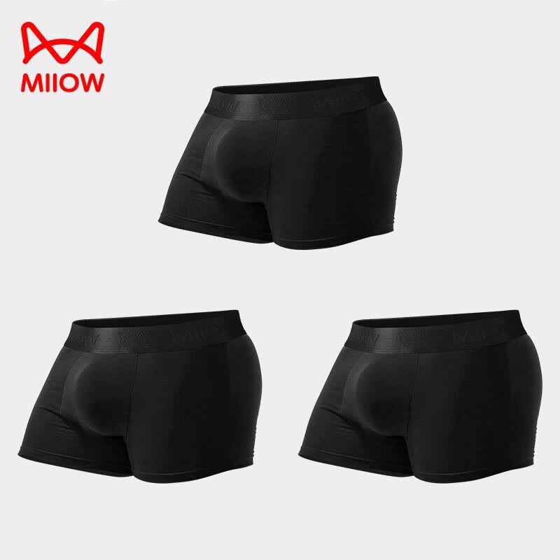 猫人内裤男3条装莫代尔四角内嵌式枪弹分离平角短裤头薄款潮流男生 黑色+黑色+黑色 3条 2XL
