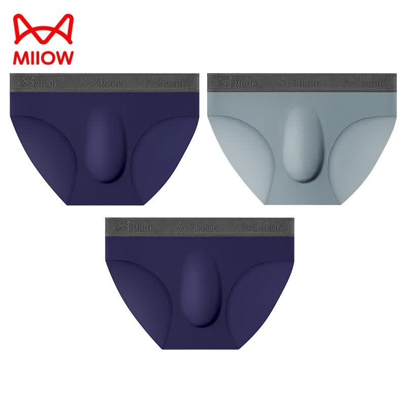 猫人冰丝内裤男性感三角短裤3条夏季薄款底裤透气男生3D冲模运动裤衩 灰+2蓝 3条 3XL (160-180斤)