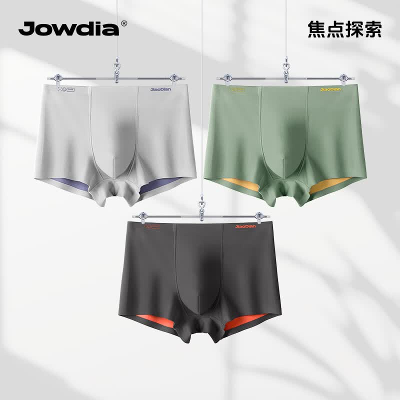 JOWDIA焦点探索男士内裤100支莫代尔四角短裤双面无痕10A抗菌透气平角裤 熔岩碳橘+森系黄绿+黄昏棕绿 3条 2XL (140斤-160斤)