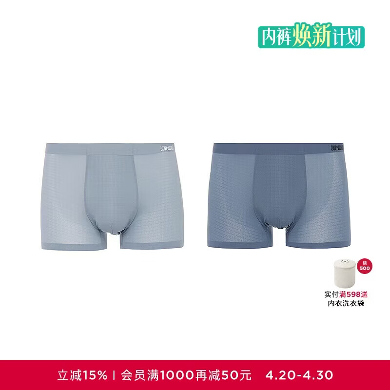 BODYWILD男士内裤【2件装】凉感网眼平角内裤ZBN23CV1-3XL
