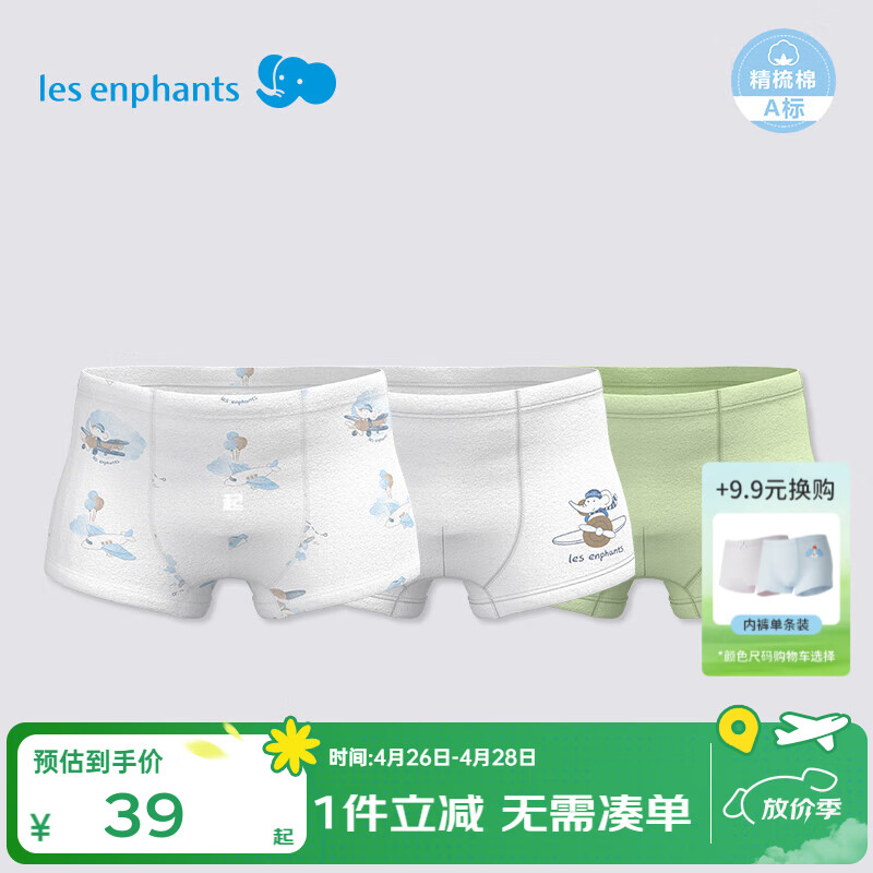 丽婴房(Les enphants)丽婴房内裤儿童内裤男童婴儿内裤男女宝宝内裤女童内裤小童柔软 【100%棉】绿色飞行-平角男童 【5A抗菌纯棉】 3条 90 cm/2岁