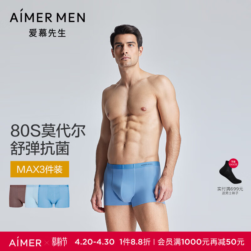 爱慕先生内裤男【3条装】轻薄抗菌透气80S莫代尔男士内裤 巧克力/晴空蓝/浪花青 3条 2XL (180)
