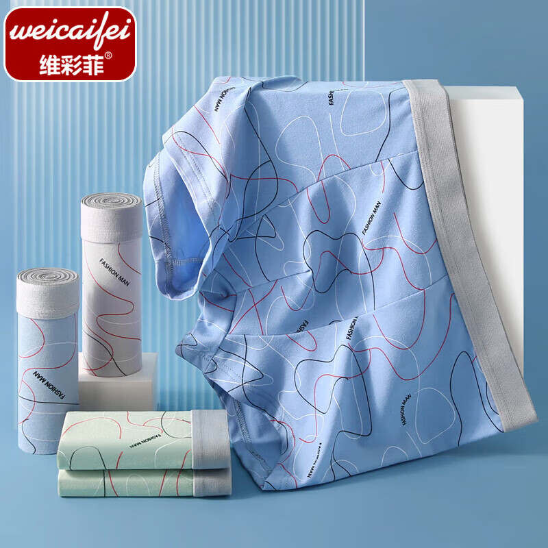 维彩菲潮流新款曲线条纹男士内裤舒适平角裤透气四角裤时尚青年宽松内裤 【颜色随机】 搭配装 2条 3XL (145-170斤)
