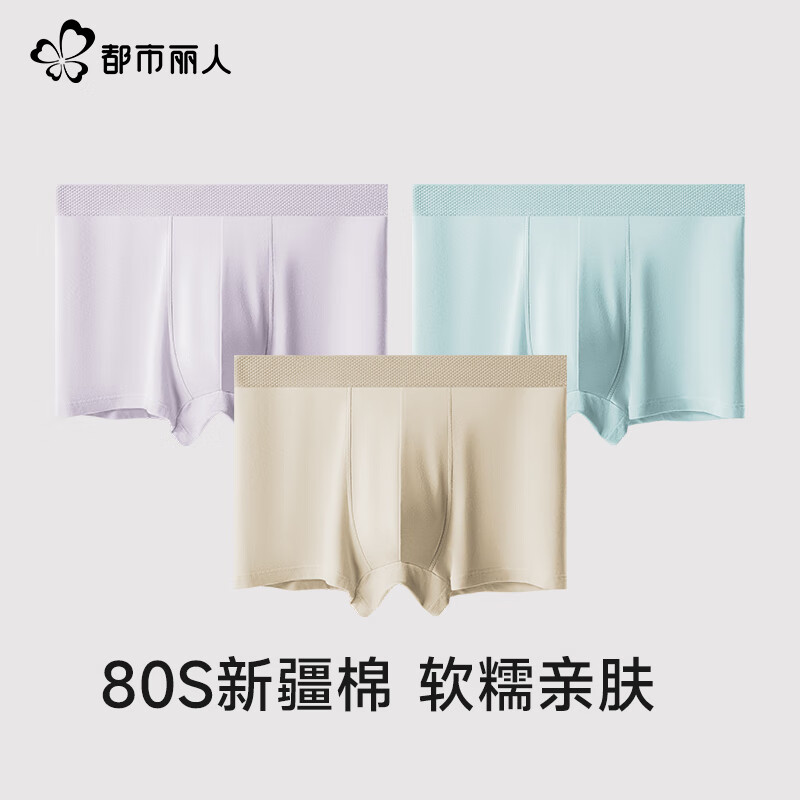 都市丽人男士内裤棉四角裤男生2025新款抗菌莫代尔平角短裤头男款 浅米色+浅紫+薄荷绿 3条 2XL 【建议体重130-150斤】