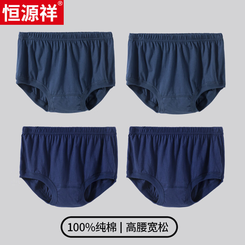 恒源祥中老年人内裤男士纯棉宽松透气短裤头爷爷老式高腰休闲三角裤衩 三角款2条铁灰2条藏青 3XL 185/(145-170斤