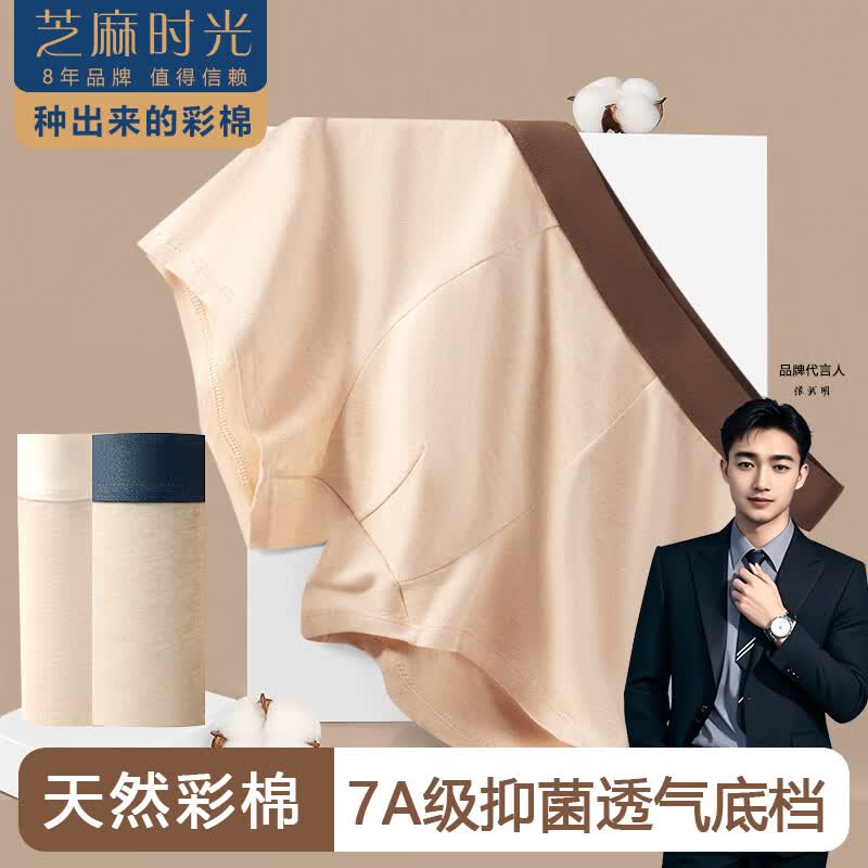 芝麻时光抗菌底档 内裤纯棉男内裤男全棉95%棉短裤衩四角裤正品 纯棉【彩棉款】【3条装】混色 2XL 建议【120-140斤】