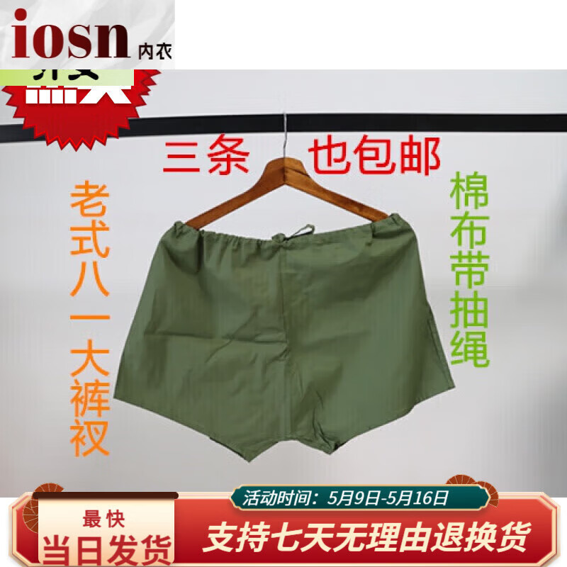 iosn老式八一大裤衩建军节军内裤男高腰棉质布军绿平角裤老人宽松抽绳 军绿色布短裤 特号(3尺2-3尺5腰围)