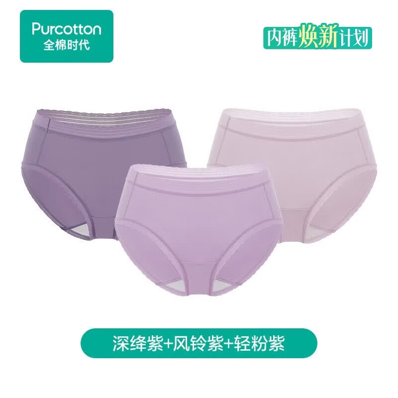 全棉时代女士内裤【高弹舒适蕾丝花边】纯棉加长里裆中高腰亲肤透气3条装 【蕾丝花边】深紫+风铃紫+轻粉紫 3条 2XL /175