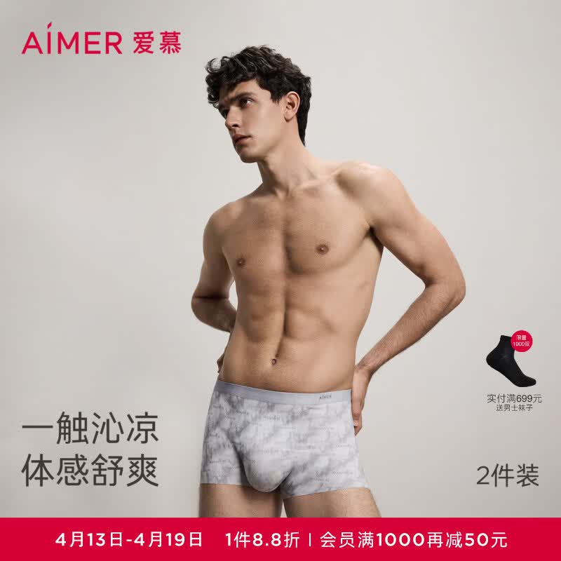 爱慕先生【凉感大空间2件礼盒装】夏季冰丝抗菌透气净痕2件内裤男 灰色LOGO+素色灰色ZS8 - 2条 3XL