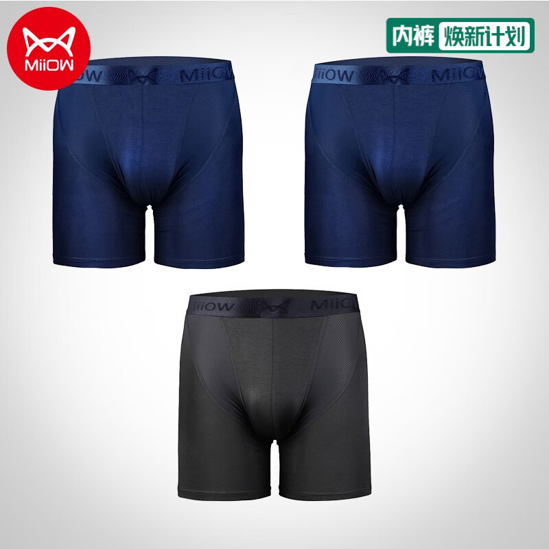猫人3条装男士内裤男运动加长腿莫代尔男生平角裤跑步防磨腿长款 宝蓝+宝蓝+灰色 3条 2XL (120-140斤)
