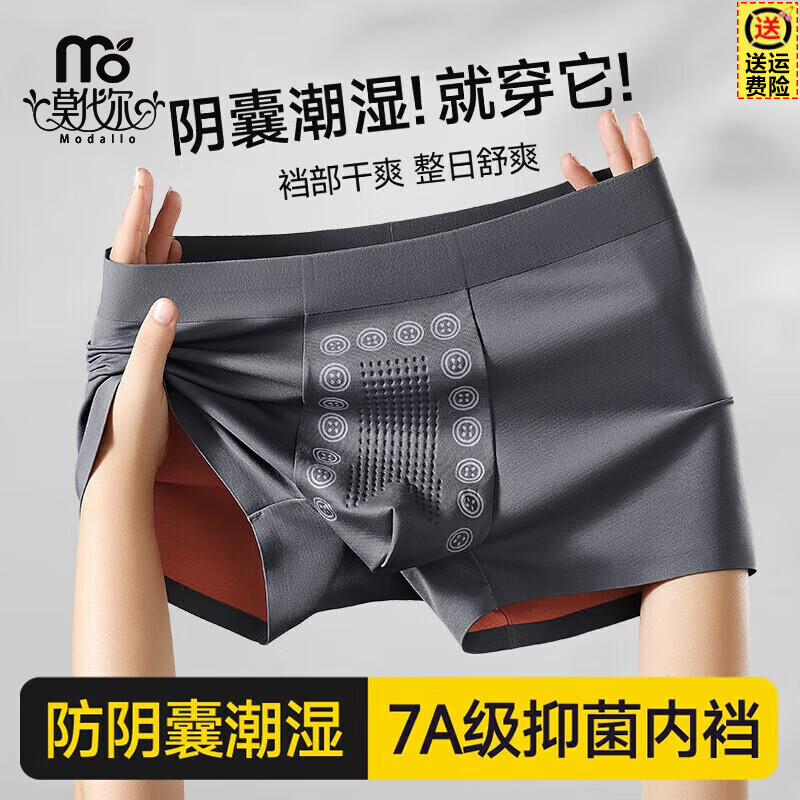 莫代尔高档男士内裤男生养护防阴囊潮湿托玛琳按摩颗粒大码平角四角短裤 深灰+浅灰+灰蓝 3条 2XL 【适合135-155斤】