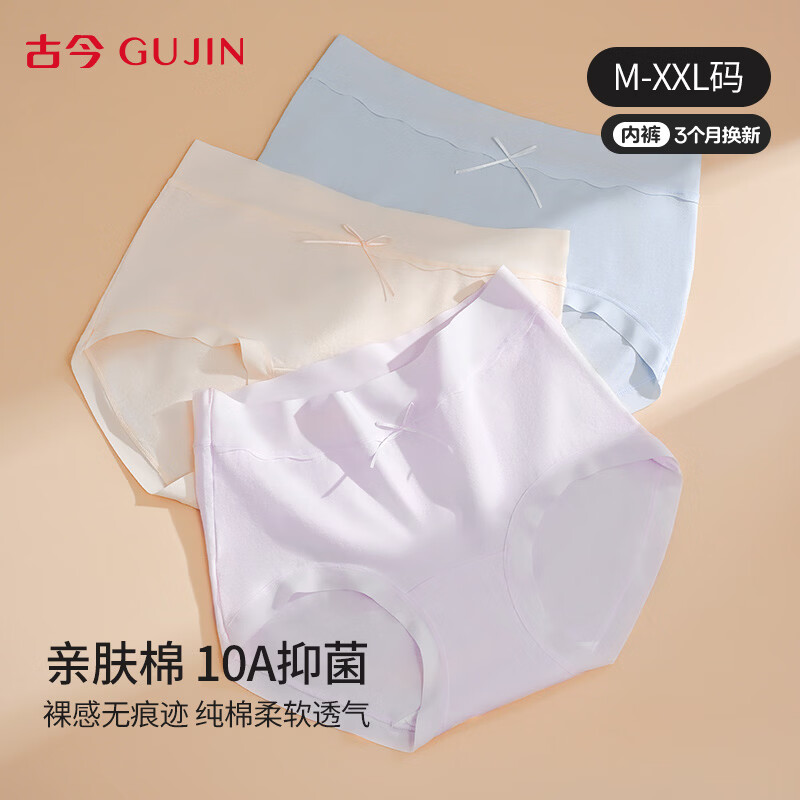 古今内衣女10A级抗菌纯色棉裆轻薄透气女士高腰内裤无痕短裤送礼 杏肤色+平静蓝+兰花紫 3条 2XL 175 (建议150~170斤)