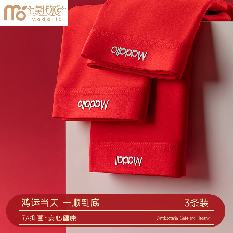莫代尔男士内裤男本命年大红色结婚喜庆平角裤鸿运透气抑菌档短裤头3条 大红+大红+大红 【莫代尔款】 3条 2XL