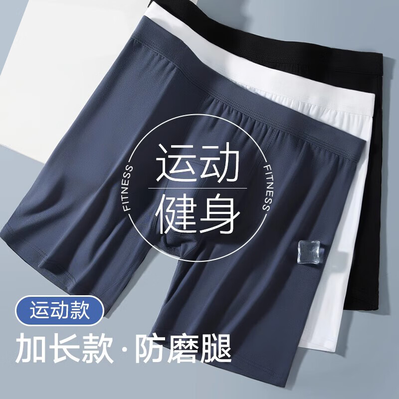 雅鹿男士内裤男夏季冰丝加长款平角裤运动跑步防磨腿男士青年四角裤头 运动透气 【黑色+宝蓝+灰色】 3条 6XL 体重230-260斤