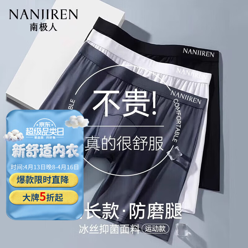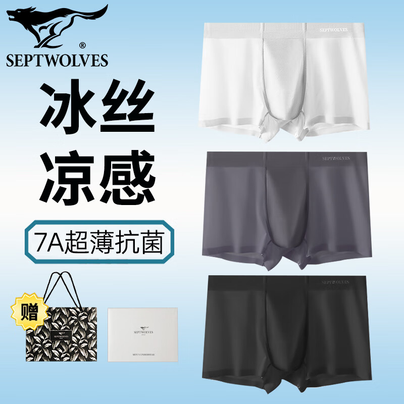 七匹狼凉感冰丝内裤男夏季超薄四角裤衩男生7A抗菌平角裤加大码运动底裤 无痕3条礼盒装(雨灰+雾灰+幕黑) 6XL (230-260斤/腰围3.6-4.0尺)