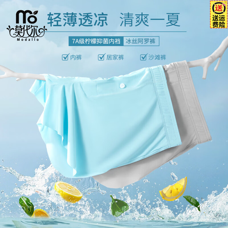 莫代尔冰丝阿罗裤男士内裤男款夏季凉感平角可外穿宽松大码居家睡裤 浅灰+浅灰蓝+水蓝【冰丝阿罗裤 7A抑菌】 3条 2XL 推荐130-150斤