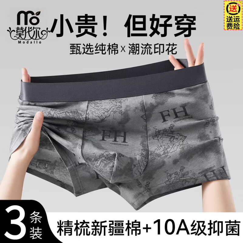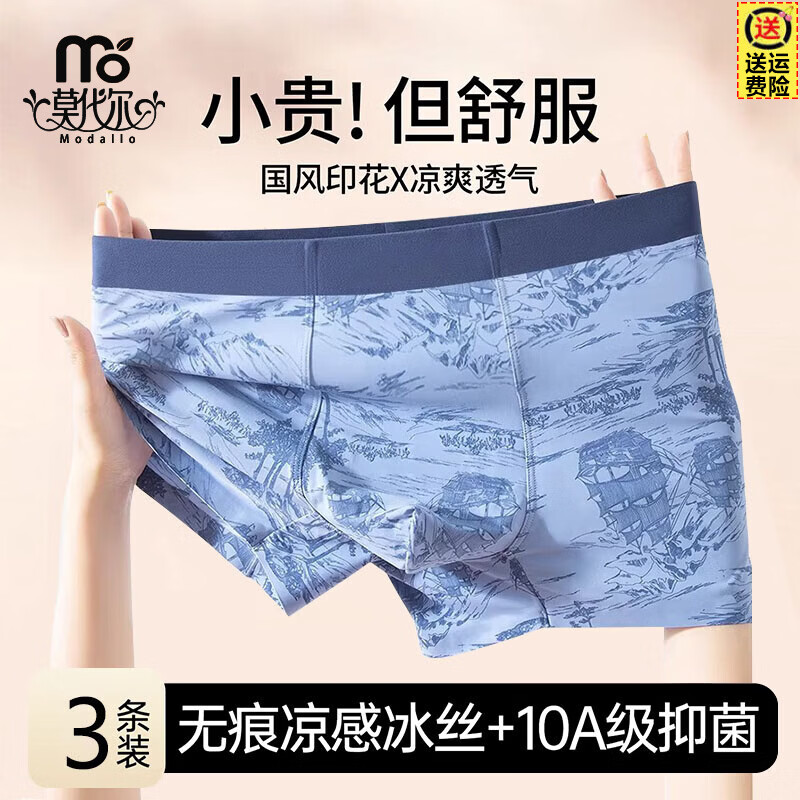 莫代尔冰丝男士内裤国风印花平角2026新款透气抑菌无痕四角短裤男款 松山绿+群山蓝+暮色灰【国风印花冰丝+10A级抑菌】 3条 2XL 【推荐130-150斤】