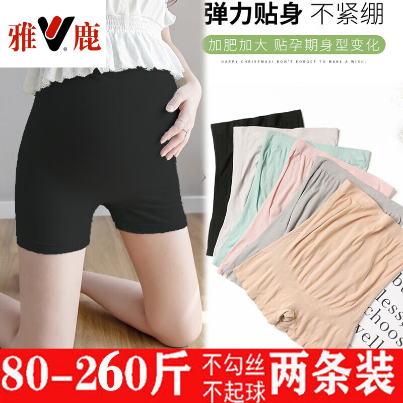 雅鹿品牌加肥加大码孕妇夏季短裤純棉安全打底裤防走光内裤高弹托腹20 深灰色+粉色两条装优质版 2XL 140160斤