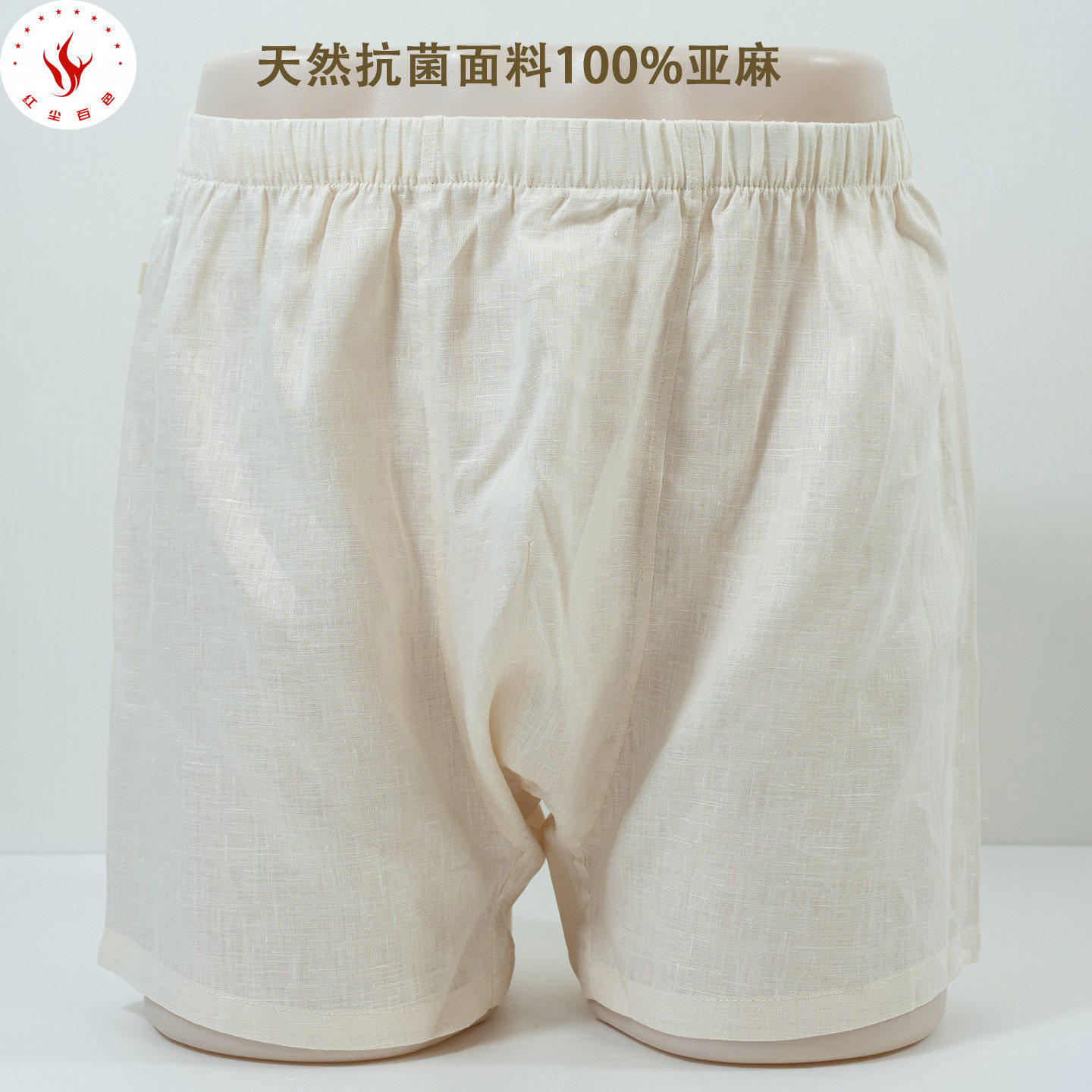 红尘百色天然抗菌抑菌男款100%亚麻平角内裤中年高档面料舒适透气