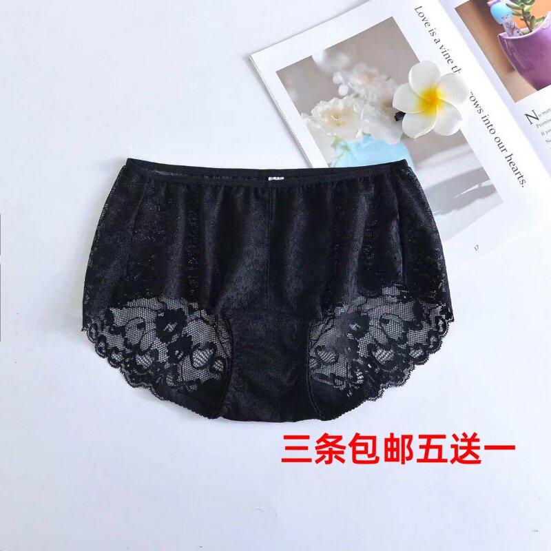 薄透明网纱性感蕾丝大码内裤女无痕中高腰女士三角裤胖妹妹纯棉裆