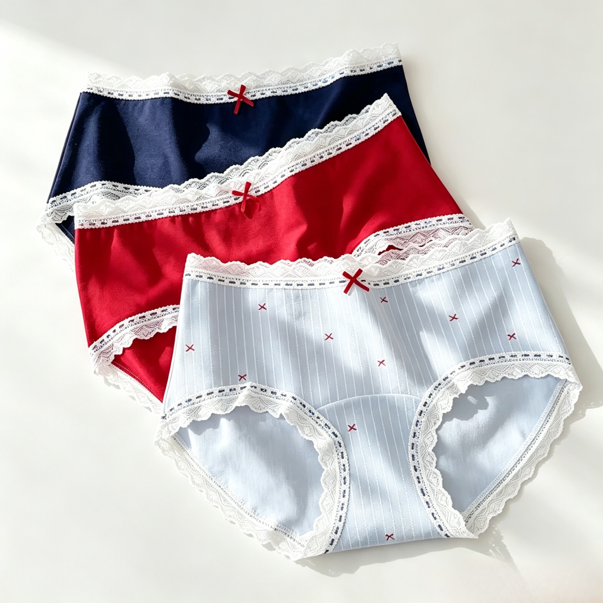 森色系五条盒装纯棉内档网纱蕾丝微透遮肚莫代尔中高腰内裤女7226