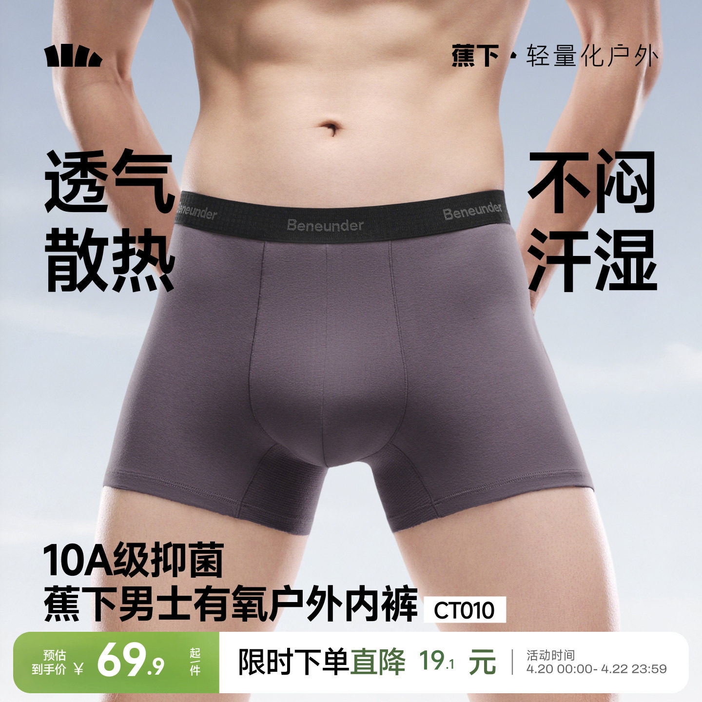 蕉下男士棉质内裤10A抑菌透气莫代尔里裆男生不夹臀四角平角短裤