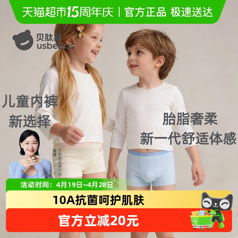 贝肽斯胎脂儿童内裤女童四角短裤男宝宝内裤高弹低敏10A抗菌奢柔