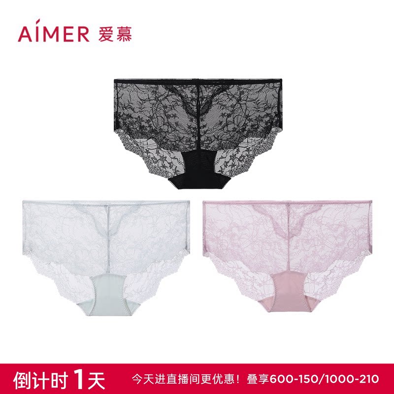 【3件包】爱慕内裤女花的藤蔓棉质底裆性感蕾丝中腰平角裤