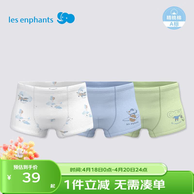 丽婴房(Les enphants)丽婴房内裤儿童内裤男童婴儿内裤男女宝宝内裤女童内裤小童柔软 【100%棉】活力飞行-平角男童 【5A抗菌纯棉】 3条 90 cm/2岁