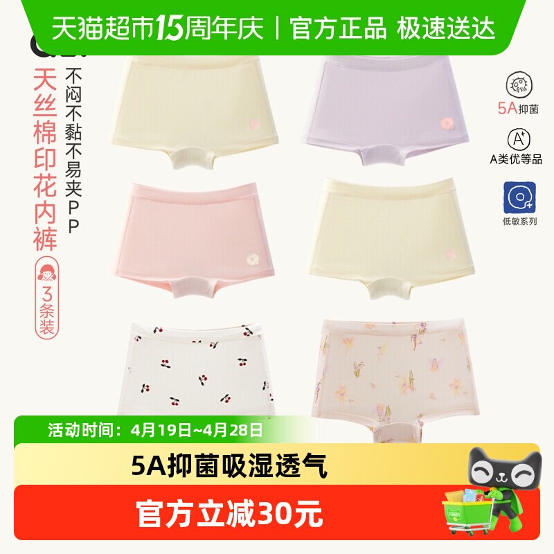 久岁伴儿童内裤女童春秋平角短裤中大童蚕丝裆7A抑菌春秋新品内裤