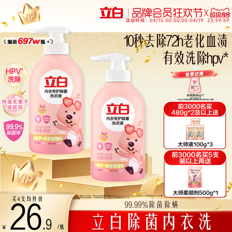 立白内衣洗衣液内裤清洗液女士专用祛除血渍杀菌正品官方旗舰店