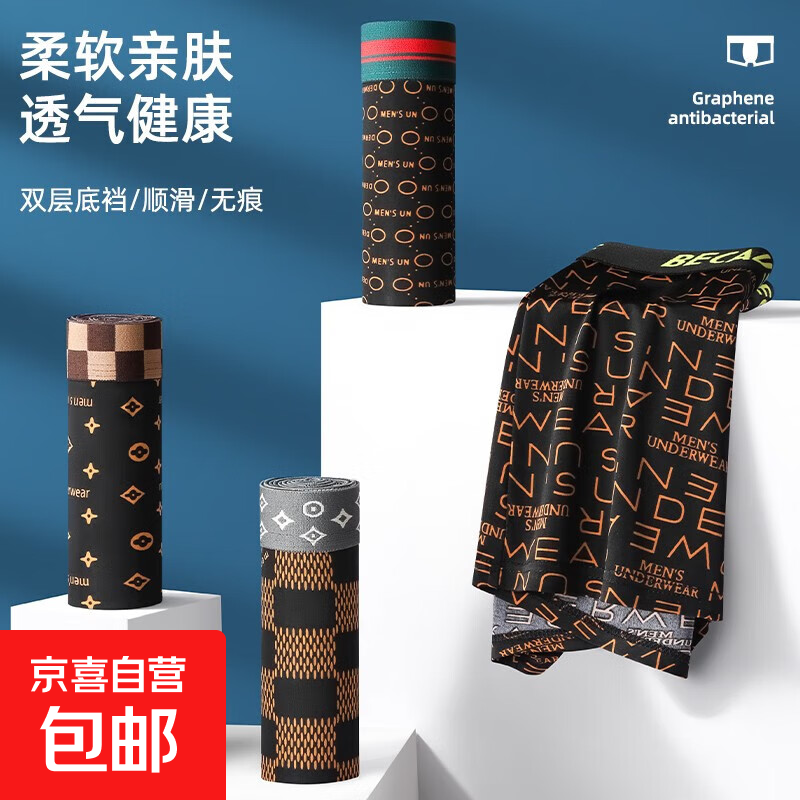 禾素时代内裤男冰丝四角裤抑菌底裆大码裤头无痕夏季透气内裤男 冰丝内裤5条 颜色随机至少3色 2XL