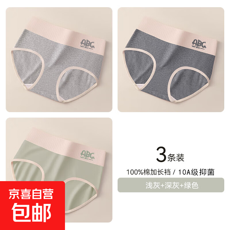 新疆棉女士内裤女纯棉10A抗菌裆 中腰透气大码女生内裤三角短裤头 纯棉抗菌(浅灰+深灰+绿色) 3条 2XL (140-160斤)