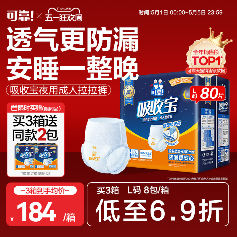 可靠吸收宝成人拉拉裤加厚老年人夜用内裤型纸尿裤尿不湿男女通用