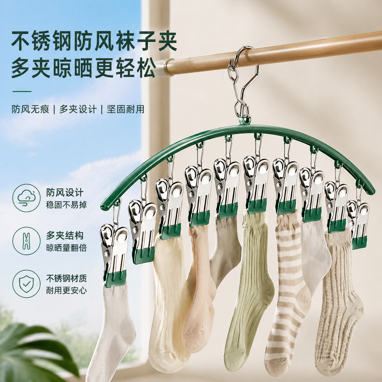 不锈钢袜子夹多夹子防风无痕家用晾内裤衣架多功能晒袜子专用神器