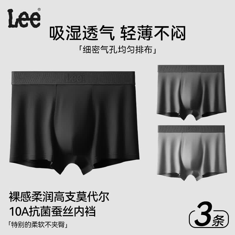 Lee男士内裤10A抗菌高弹透气平角裤舒适柔软莫代尔宽松大码四角短裤 黑色+中灰+棕咖 3条 2XL (建议140-160斤)
